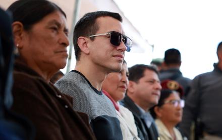 En el acto entregó 1.800 bonos semilla, mientras que decenas de ciudadanos se agolparon en las afueras para rechazar su presencia en Otavalo.