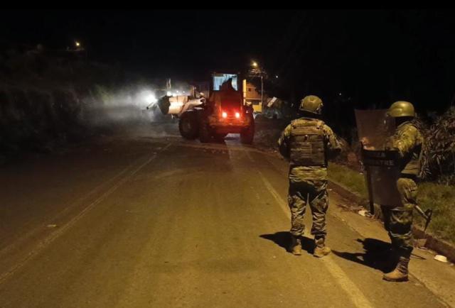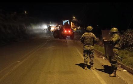 En la madrugada de este domingo 5 de octubre de 2025, militares de la Brigada de Caballería Blindada despejaron por segunda ocasión la ruta Ambato–Guaranda en los sectores Quindigua, Larcampamba y Surucpullo, que se mantenía obstruida por árboles, piedras y montículos de tierra. “Fue un trabajo minucioso, pero necesario para que el pueblo tenga libre paso”, indicó un militar que participó en el operativo.