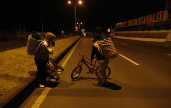 En medio del bloqueo, la bicicleta se convirtió en el transporte más confiable. Son las 22:00. Dos muchachos pedalean entre risas mientras cargan en sus espaldas tanques de gas envueltos en chales indígenas. El equilibrio les cuesta, pero no hay otra opción: los camiones no llegan y el gas escasea.