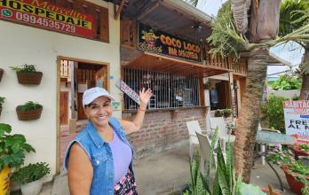 En Paufí se vive como en casa. Doña Mirian Marcela Paz Cuvi, quiteña de nacimiento y esmeraldeña por elección, encontró aquí el refugio que buscaba. “Aquí la paz reina”, dice con una sonrisa mientras muestra su pequeña cabaña frente al mar. Llegó buscando descanso después de cuarenta años de trabajo y se quedó porque el lugar le enseñó el valor del silencio.