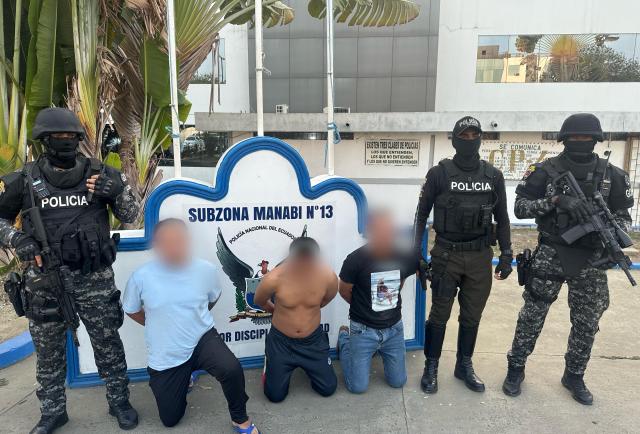 El coronel Geovanny Naranjo, comandante de la Zona 4 de la Policía Nacional (Manabí–Santo Domingo), informó que la rápida reacción de las unidades permitió neutralizar el ataque y detener a los presuntos responsables. “Al momento tenemos cuatro detenidos, entre ellos un líder de una facción de Los Choneros en este territorio, alias Niño Rata”, explicó el oficial.