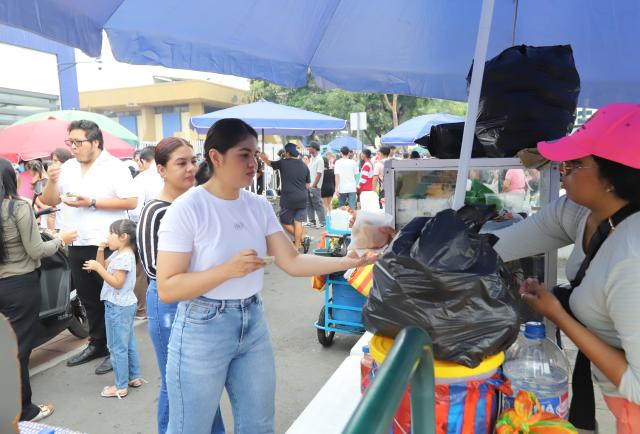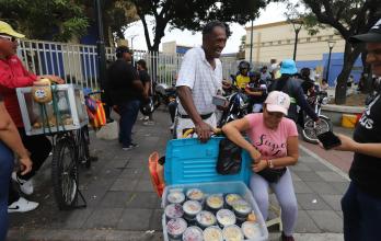 Mientras el país votaba, otros buscaban ganarse unos dolaritos aprovechando la movida del Referéndum y Consulta Popular. Desde temprano, los comerciantes informales se adueñaron de las veredas cerca de los recintos, ofreciendo de todo para asegurar algo de venta.