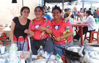 La mujer, venezolana con más de cinco años en Ecuador, confesó: “Tocó salir a ganarse unos dolaritos. Nosotros, los informales, tenemos que aprovechar, porque no todos los domingos hay esta oportunidad”.