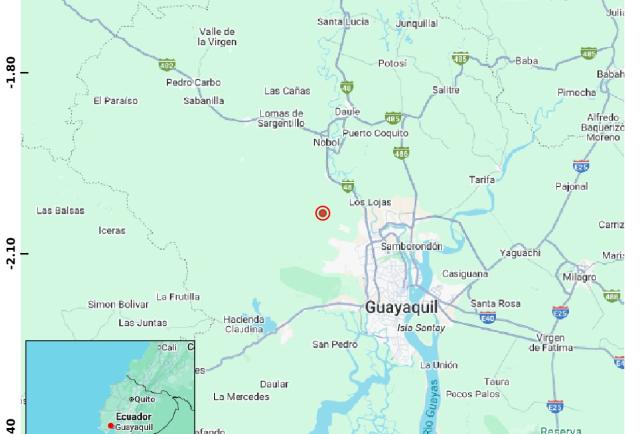 El punto corresponde a un área situada aproximadamente a 12.91 kilómetros de Nobol, una zona que en los últimos meses ha registrado actividad sísmica leve, propia de la dinámica tectónica del Litoral ecuatoriano.