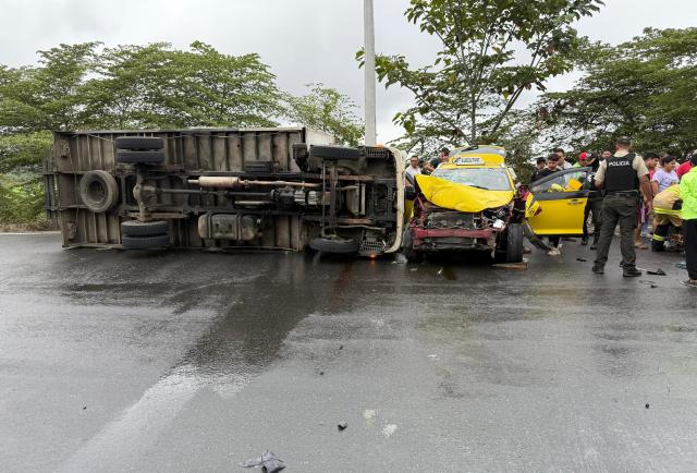 Serían las 08:20 cuando al llegar a una curva, por causas aún no determinadas, el conductor perdió el control del volante. Esto provocó que el camión se volcara y derrapara antes de chocar contra un taxi que iba por el carril contrario.
