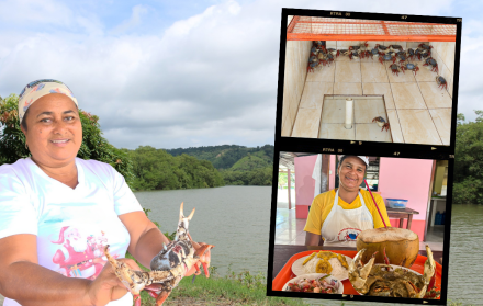 Puede dejarse seducir por el célebre cevicangre, que reúne en un solo plato cangrejo encocado, ceviche de camarón, arroz, patacones dorados y agua de coco. Cada bocado narra la historia de generaciones que aprendieron a transformar lo que les daba el río y el mar en un símbolo de identidad y orgullo.