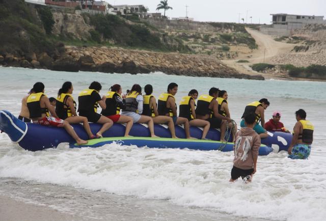 Aunque el sol se mantuvo oculto gran parte del día, muchos optaron por caminar a la orilla del mar, tomarse fotografías o degustar platos típicos. Otros se animaron a practicar deportes acuáticos y a disfrutar de los tradicionales paseos en banana, que fueron los más solicitados por los turistas.