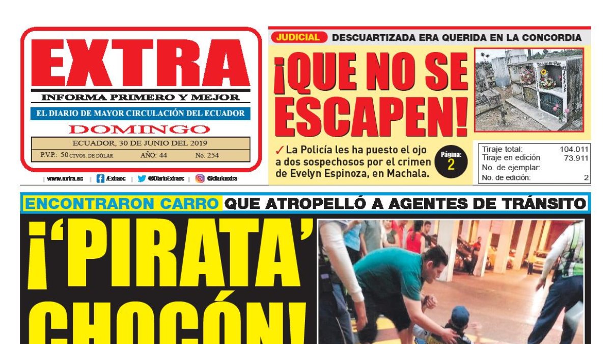 Ecuador Actualidad Edición impresa Facebook Twitter Whatsapp Whatsapp Copiar enlace Publicado por Redacción Extra Creado: 28.06.2019 | 17:27 Actualizado: 29.06.2019 | 20:09