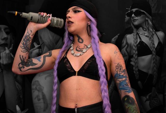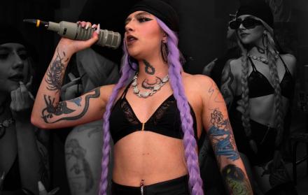 La quiteña de 20 años, el cuerpo tatuado y una ideología que combina feminismo, oscuridad y rebeldía. Su música cruda busca incomodar y sanar heridas