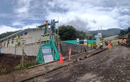 El proyecto se levanta en la zona alta, desde donde se puede observar todo el paisaje andino que rodea a la parroquia. A pesar del clima, la obra ya alcanza el 90% de avance.