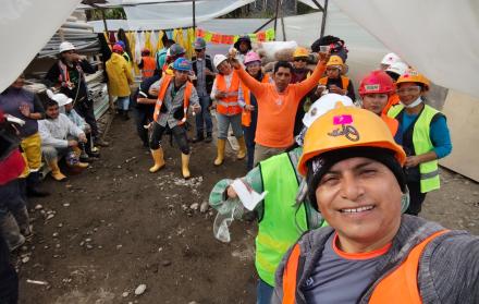 Desde hace tres meses, decenas de voluntarios del Ecuador y del extranjero trabajan en la construcción de un salón de reuniones en El Triunfo, Patate.