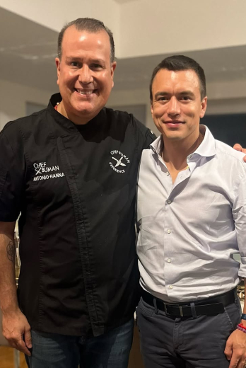 En su recorrido gastronómico, Antonio ha vivido experiencias inolvidables, como cuando cocinó para el presidente Daniel Noboa y su familia. “Pensé que era una broma. Me llamaron de Palacio y preparé un menú de seis tiempos, fue una experiencia lindísima”, recuerda orgulloso. Aunque no detalló los platos que degustaron, Hanna mencionó que Noboa ama los mariscos y le gusta el buen vino.