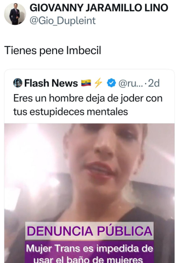 Ante su queja pública de Ivanna, Dupleint, quien también es embajador de Derechos Humanos a nivel internacional, publicó un comentario en la red social X que generó controversia: “Porque tienes pene, imbécil”, en alusión a la razón por la que se le habría negado el acceso al baño femenino.