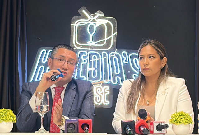 Iván Saquicela con la hermana de Pepe Tola, Verónica Tola, en una rueda de prensa realizada este 22 de octubre.Cristhian Vinueza / EXTRA