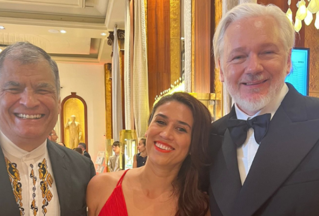 Julian Assange, protagonista de una de las controversias diplomáticas más resonadas de los últimos años, asistió al evento acompañado por Correa, quien en su gobierno (2007-2017) le concedió asilo diplomático en la embajada de Ecuador en Londres, protegiéndolo de una extradición a Estados Unidos.