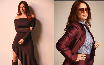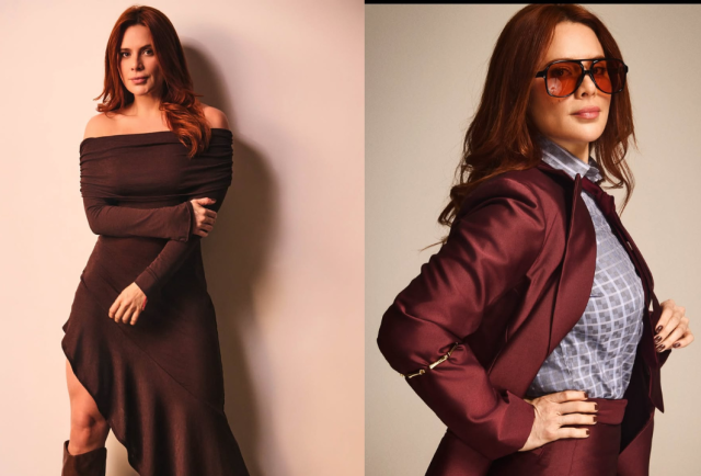 Para las fotos, Samantha apostó por dos looks: un vestido café de silueta fluida y un conjunto audaz de pantalón entallado color vino, combinado con una chaqueta y botas en el mismo tono y material. El resultado fue una mezcla de sofisticación y frescura. Esto lo acompañó de unas gafas de sol, que combinaban con el look fashion de la presentadora.