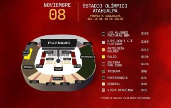Las entradas tendrán precios que van desde USD 29 hasta USD 299, más impuestos y cargos por servicio. Las localidades estarán disponibles en diferentes zonas del estadio, desde graderíos hasta áreas VIP, dependiendo de la ubicación.