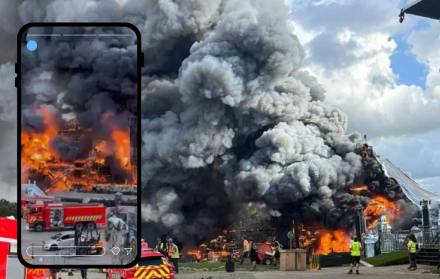 Testigos presenciales reportaron fuertes explosiones, y algunos vídeos compartidos en redes sociales muestran fuegos artificiales lanzándose hacia el cielo desde la estructura afectada.