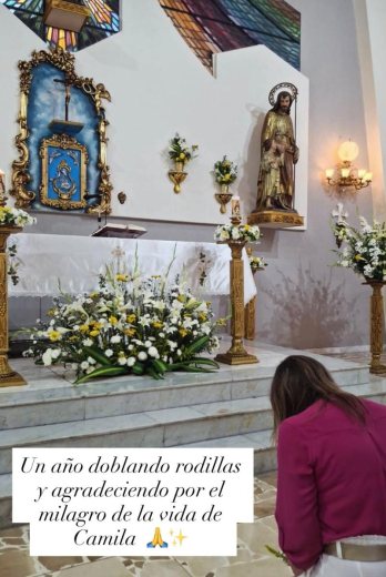 “Un año doblando rodillas y agradeciendo por el milagro de la vida de Camila”, escribió Úrsula Strenge en sus historias de Instagram, frase que acompañó con una imagen suya arrodillada ante un altar.
