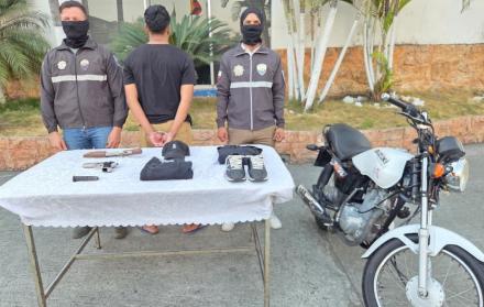 Durante la retención del menor en aquella vivienda se encontró una motocicleta reportada como robada, dos armas de fuego (una cartuchera y una pistola) y prendas de vestir.