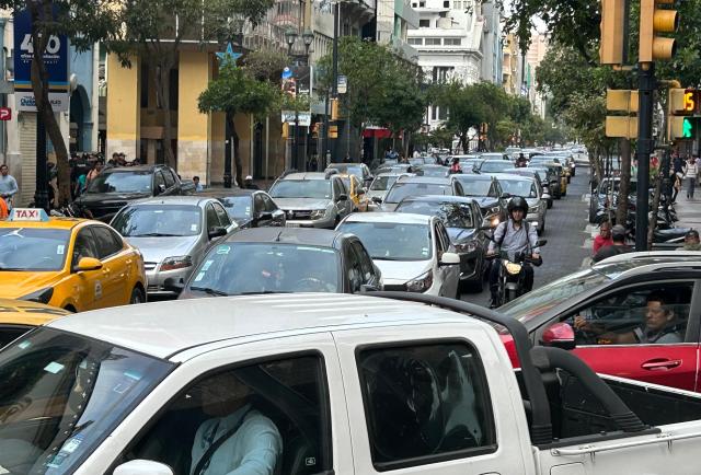 Congestión vehicular en el centro de Guayaquil por marcha convocada por el Gobierno