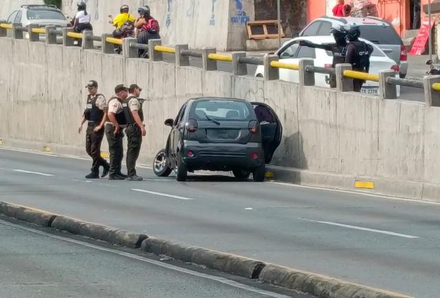 El conductor habría realizado una maniobra brusca hacia la derecha en un intento de huir de los sicarios, lo que provocó que uno de los neumáticos del vehículo quedara fuera de su eje. El carro terminó detenido a un costado de la vía.