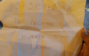 Los criminales también dejaron una hoja de cuaderno, escrita a mano con un bolígrafo, en la que se incluía un número de celular y una amenaza: “La próxima va muerte, si no llaman”, decía el mensaje hallado por la Policía, que acudió al lugar para levantar indicios y recabar evidencias.