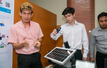 Ese artefacto fue uno de los más llamativos de la feria de proyectos realizada en la Escuela Superior Politécnica del Litoral (Espol), en Guayaquil, este 22 de agosto. Como cada semestre desde 2018, los mejores trabajos de estudiantes fueron exhibidos a empresas y alumnos de bachillerato.
