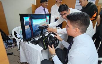 Mientras el carrito narrador sorprendía a los invitados que lo rodeaban, un par de jóvenes presentaban una propuesta orientada a salvar vidas en las carreteras. Yeremy Delgado, estudiante de Mecatrónica de 23 años, y su compañero Darwin Jácome diseñaron un sistema que monitorea los ojos de los conductores para evitar accidentes causados por quedarse ‘ruco’ al volante.