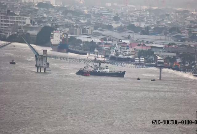 Desde el #C5GYE se detectó una afectación en la infraestructura del puente que conecta con la Isla Santay, producto del impacto de una embarcación en el río Guayas.