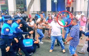 Un nuevo enfrentamiento entre comerciantes informales y agentes de control municipal alteró la tarde de este jueves 24 de octubre de 2025 en pleno centro de Guayaquil. El hecho se registró aproximadamente a las 14:00, en las calles Colón y Pichincha, una zona conocida por la venta de camisetas y artículos deportivos, en el sector de la Bahía.