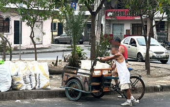 En un redondel donde la avenida Alberto Spencer se cruza con la Manuela Sáenz en La Floresta, al sur de Guayaquil, el ambiente engaña: a simple vista parece limpio, como si el problema hubiese sido por fin controlado. Los sacos blancos con el logo de Urvaseo alineados en la vereda parecen símbolo de orden, pero no duran mucho.