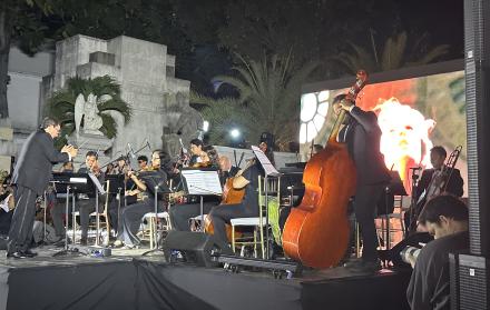 En un ambiente atípico, entre tumbas y mausoleos famosos, más de mil personas disfrutaron de un concierto sinfónico que, desde el escenario mismo, la puerta 3 del Cementerio General de Guayaquil, generaba expectativa.