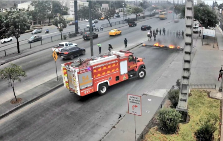 Adicionalmente, una unidad del Cuerpo de Bomberos de Guayaquil también arribó al sitio para extinguir el fuego generado con la quema de neumáticos.