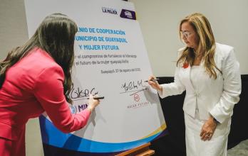 La alianza fue suscrita por Andrea Giler, directora de la Mujer, y María Dolores Cobos, presidenta de Mujer Futura, en un acto que contó con la presencia de la vicealcaldesa Tatiana Coronel, empresarias y representantes de compañías municipales y privadas.