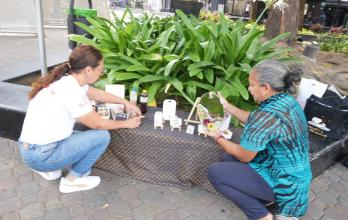 Gina Cruz, de Arte Botánico, convierte flores naturales en resina en cuadros, collares, portavasos y espejos. Precios: desde 3 hasta 20 dólares. “Es un buen producto para diciembre, para todo tipo de público en general”, comenta.