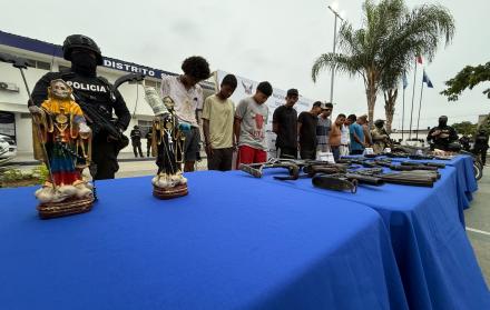 “Se han retenido 13 armas de fuego, entre ellas siete fusiles calibre 2.23 y 5.56. Cinco fueron encontradas en el complejo penitenciario de Guayaquil, tras una operación efectiva de las Fuerzas Armadas”, detalló el oficial.