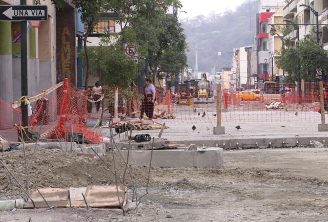 Al centro de Guayaquil hay que ir con mascarilla. La gente no se queja de los trabajos, pero sí de que su salud termine afectada por la polvareda