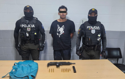 Los uniformados vieron cómo al joven de 22 años, supuestamente vinculado a la organización criminal Chone Killers, le extendían un maletín celeste desde una camioneta, por lo que iniciaron la persecución. Al revisar este bolso, los policías hallaron en él un subfusil de fabricación industrial, además de una alimentadora cargada con 26 municiones de calibre 9 milímetros.