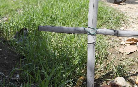 En el lugar en donde quedó tirado el cadáver este miércoles 1 de febrero de 2023 por la mañana había una cruz, dos velas encendidas y dos restos de municiones encima de un pedazo de ladrillo.