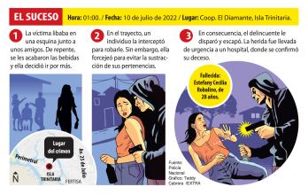 La joven habría forcejeado para librarse del robo. No obstante, esa situación habría provocado que el pillo disparara en su contra. Luego, el ladrón escapó, mientras que Robalino Asencio quedó tendida sobre la calzada.