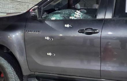 El automotor, donde se desplazaba la victima, esta con la ventana destruida y la puerta izquierda con mas cuatro disparos.