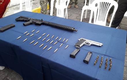 Inmediatamente policías y militares realizaron un operativo en la zona e incautaron un fusil calibre 5.56, una pistola 9 mm, tres alimentadoras 26 proyectiles calibre 5.56 y 19 de 9mm. Así lo dio a conocer Patricio Ramos, comandante del Distrito de Policía Esmeraldas.