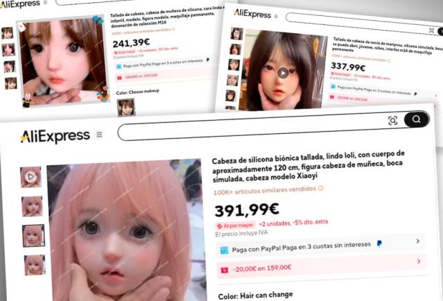 Los técnicos de la organización dieron con estos productos tras búsquedas como “muñecas sexuales niñas”, aunque dentro de AliExpress hoy no figuran descripciones explícitas sobre su uso sexual.