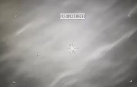 Las imágenes, tomadas en blanco y negro con una cámara térmica, muestran un objeto desplazándose a gran velocidad en línea recta sobre las olas. Otro dron dispara un misil Hellfire que parece impactarlo de lleno.