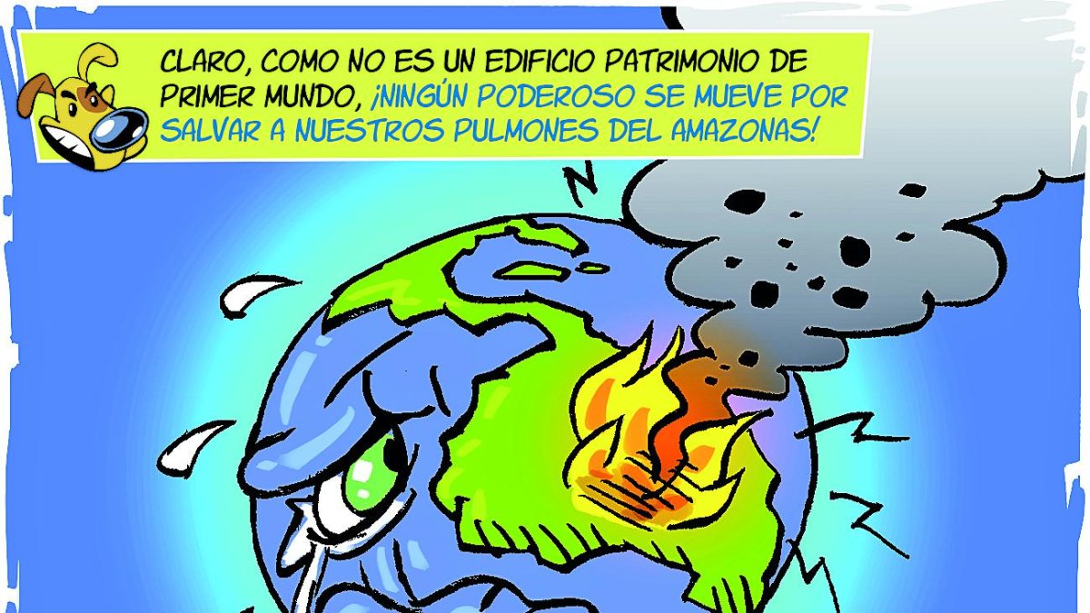 Opinión Opinión Caricatura: Se quema el planeta Facebook Twitter Whatsapp Whatsapp Copiar enlace Creado: 24.08.2019 | 18:21 Actualizado: 24.08.2019 | 19:00 Bolsonaro le da poca importancia al tremendo flagelo.