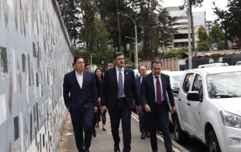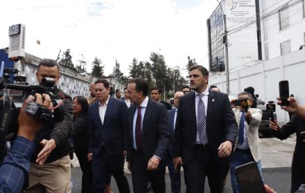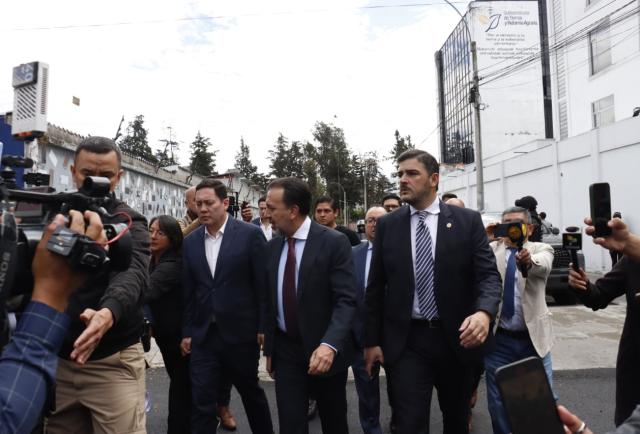Los tres alcaldes caminaron una cuadra hasta llegar a la Cancillería, ubicada en el centro norte de Quito.