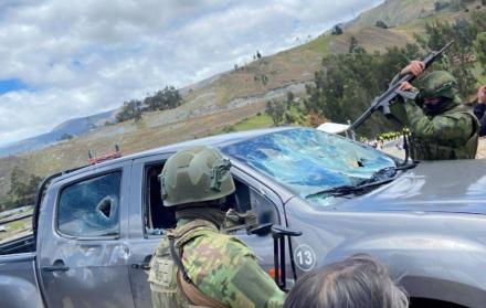 La controversia cobró fuerza luego de que se viralizara una fotografía en la que un miembro del Ejército rompe con la culata de su fusil el parabrisas de uno de los vehículos afectados en el ataque del martes.