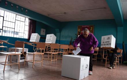 En el Colegio 10 de Agosto, en el centro de Quito, la jornada de consulta popular reunió a adultos mayores y bebés que acompañaron a sus madres