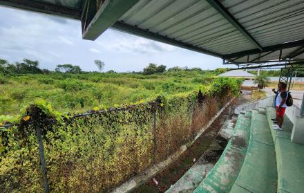 La pista atlética también da señales del abandono. Aunque parte de la cancha de fútbol está operativa gracias a la intervención del Municipio de Rioverde que la usa para el campeonato intercolegial cantonal. La pista de tartán está desgastada, con tramos invadidos por maleza. Cada zancada que se intente ahí es una lucha contra el deterioro.